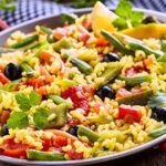 - Paella: Arroz con mariscos, pollo, chorizo y azafrán, cocido lentamente para obtener sabores profundos.